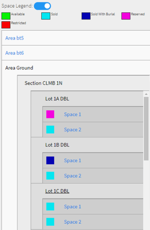 In an effort to more easily locate graves of a particular status within your cemetery, we have a ddeda status legend to CIMS Light Cloud. To use the new legend feature, start by enabling the legend using the toggle button. Once the option is enabled, our default status options and colors will appear, along with any cemetery defined statuses that have been created within CIMS Cloud. Every space in the cemetery list, as shown to the right, will now include a color coded box indicating the status of that particular grave. If you would like to change any of the colors, simply click the colored box in the top legend that you would like to change, and select a new color from the box that appears. Closing the color selection box automatically updates the colors below, as well as saves your preferences inside our database.